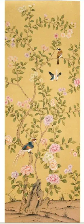 Customized wall paper Hand-painted silk wallpaper painting Cherry with bird hand painted wallcoveri